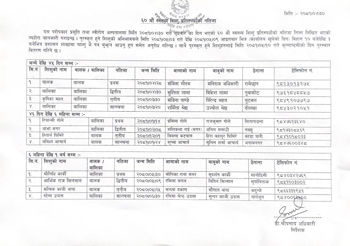 ताजा अपडेट Document Archieve S.N. Title View Download Healthy Baby Competition Result 1 Healthy Baby Competition Result View Download